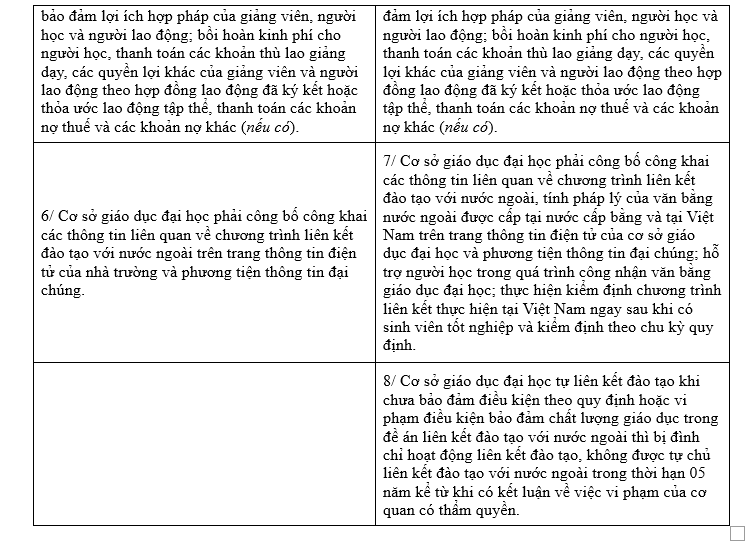 Đáng chú ý, tại Điều 11 đối với liên kết chương trình giáo dục và Điều 24 đối với liên kết chương trình đào tạo; thời hạn liên kết không quá 05 năm kể từ ngày được phê duyệt và có thể được gia hạn, mỗi lần gia hạn không quá 05 năm; điều kiện để gia hạn hoặc điều chỉnh liên kết giáo dục phải được thực hiện trong thời hạn 06 tháng trước khi liên kết giáo dục hết thời hạn hoặc hợp đồng hợp tác giữa các bên liên kết.