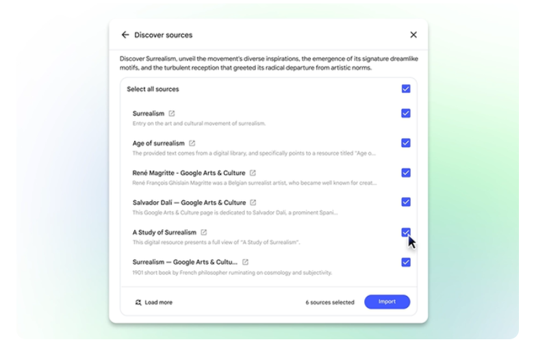 Một trong những yếu tố quan trọng nhất để học tập hiệu quả chính là tìm kiếm được tài liệu học tập chất lượng. Với NotebookLM, bạn có thể dễ dàng tìm kiếm và thêm tài liệu từ web ngay trong ứng dụng, giúp việc học trở nên thuận tiện hơn bao giờ hết.