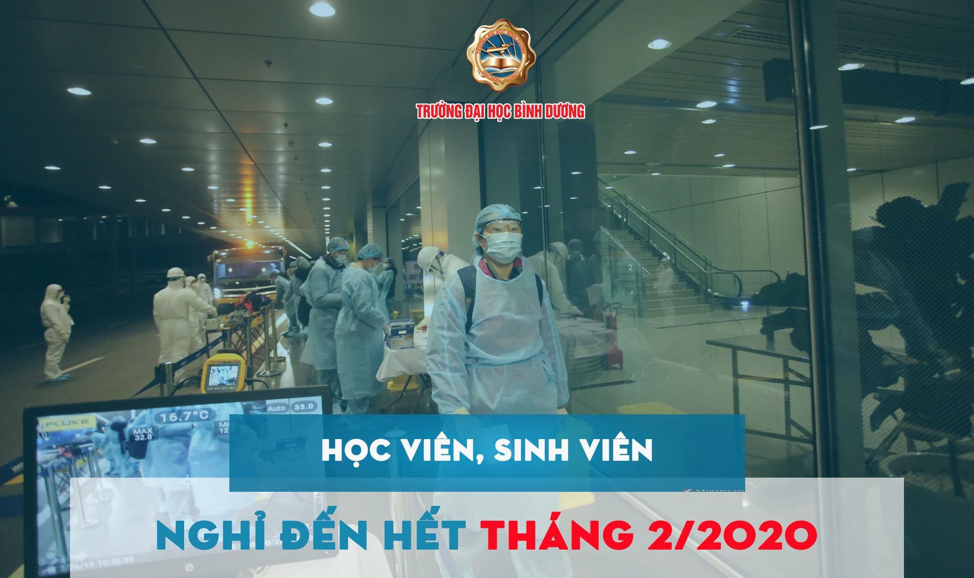 Trước tình hình diễn biến phức tạp của dịch bệnh viêm đường hô hấp cấp do virus corona (nCoV) gây ra, nhằm đảm bảo phòng chống dịch corona xâm nhập, lây lan trong Nhà trường, Trường Đại học Bình Dương quyết định cho phép học viên, sinh viên Trường nghỉ tiếp đến hết tháng 2/2020.