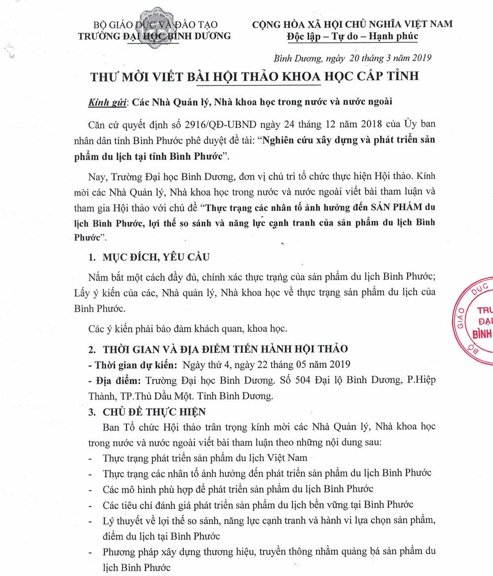 Thông báo về việc viết và gửi bài cho Tạp chí Khoa học và Công nghệ - Trường Đại học Bình Dương số 02 [3/2019]