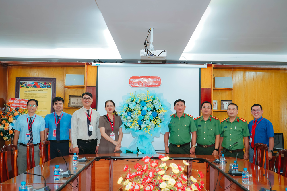 Phòng An ninh đối ngoại - Công an tỉnh Bình Dương đến thăm và chúc mừng.
