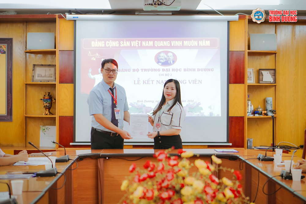 Vào lúc 14h00, thứ Năm, ngày 03/10/2024, tại phòng họp A1, Trường Đại học Bình Dương, Chi bộ 2 – chi bộ giảng viên long trọng tổ chức Lễ Kết nạp Đảng viên mới cho quần chúng Châu Thị Nguyên – Giảng viên Khoa Kiến trúc – Xây dựng.