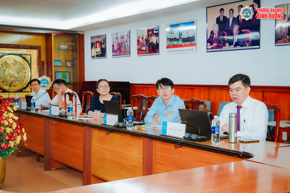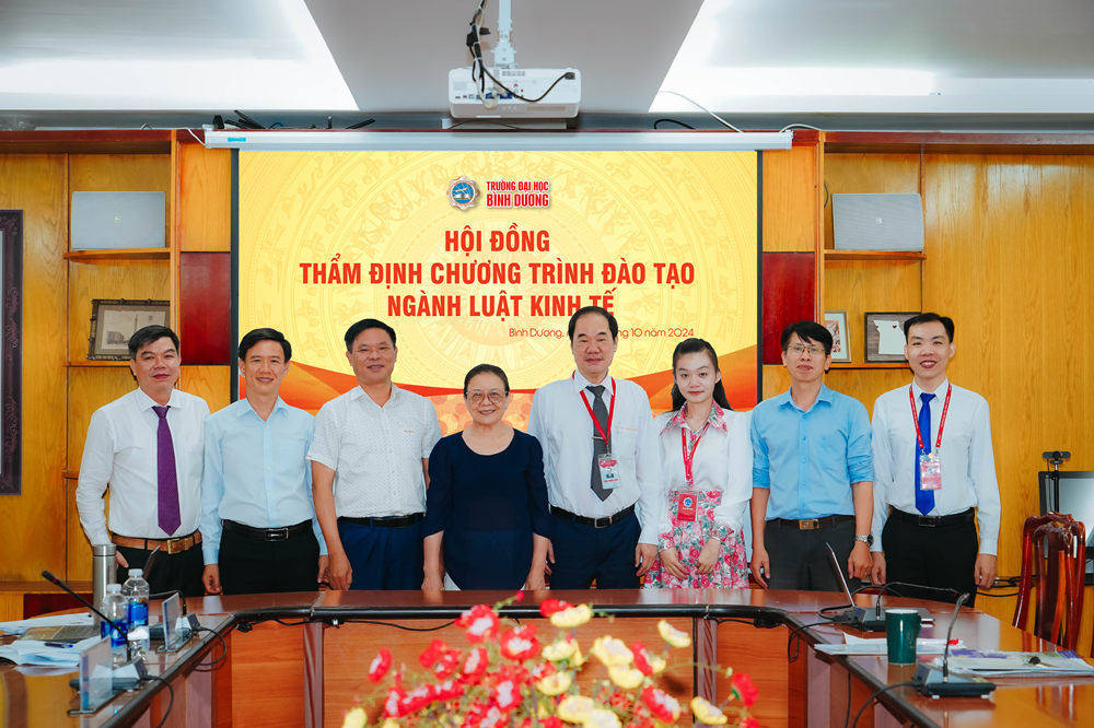 Ngày 03/10/2024, tại Phòng Họp A1, Trường Đại học Bình Dương đã tổ chức cuộc họp thẩm định chương trình đào tạo ngành Luật Kinh tế trình độ đại học. Hội đồng thẩm định gồm các chuyên gia như: PGS.TS. Lê Thị Châu - Giảng viên Trường Đại học Tôn Đức Thắng (Chủ tịch); ThS. Hoàng Đức Thuận - Phó Trưởng ban Tuyên giáo Đảng ủy Khối Doanh nghiệp Tỉnh Bình Dương (Thư ký); PGS.TS. Hồ Xuân Thắng - Giảng viên Khoa Luật, Đại học Công Thương TP.HCM (Ủy viên phản biện 1); TS. Nguyễn Hữu Nam - Phó Trưởng khoa Luật, Trường Cao đẳng Cảnh sát Nhân dân II (Ủy viên phản biện 2) và TS. Nguyễn Xuân Bang - Phó Trưởng khoa Luật, Đại học Công nghệ TP.HCM (Ủy viên).