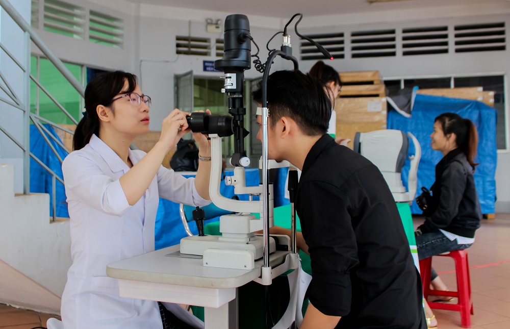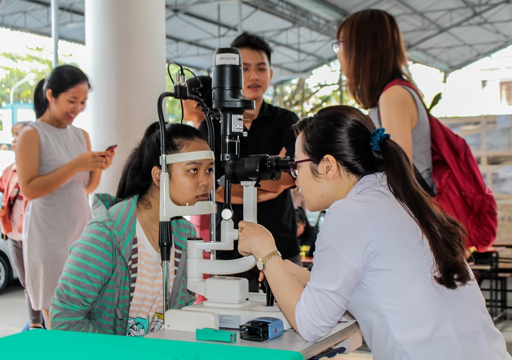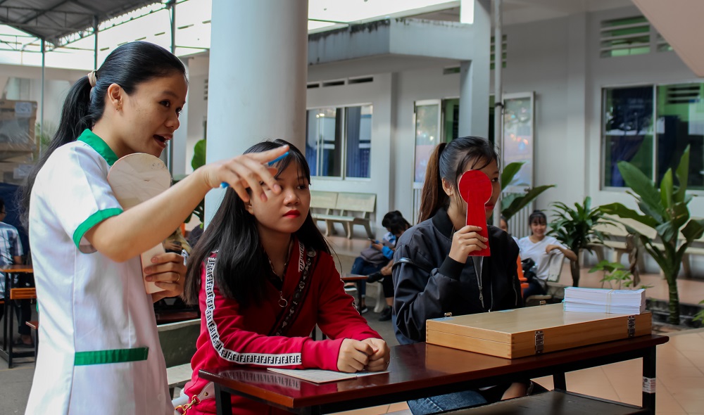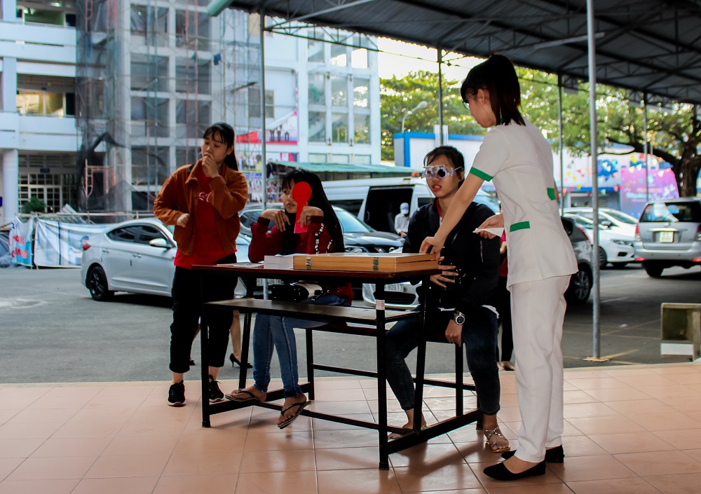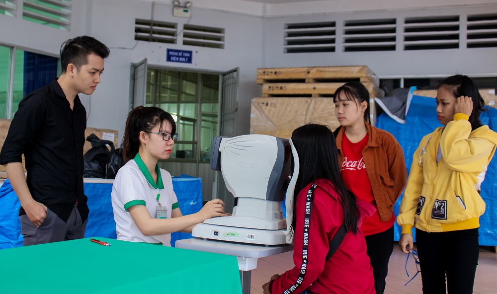 Bác sĩ Bệnh viện Hoàn Mỹ Vạn Phúc 1 khám mắt miễn phí cho sinh viên của Nhà trường