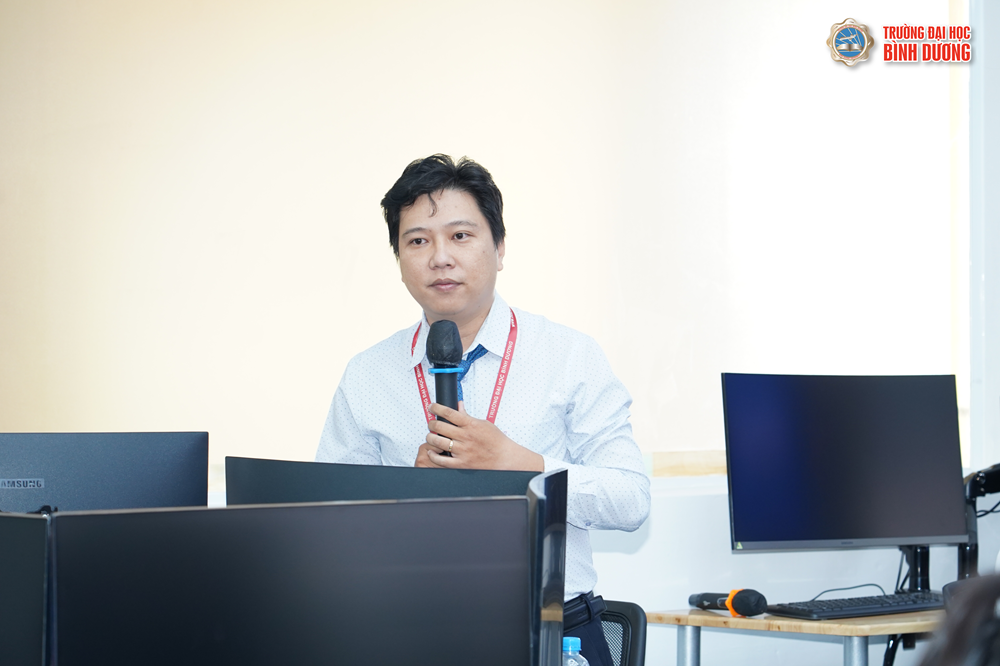 Trong khuôn khổ Hội nghị, ThS. Nguyễn Thanh Sơn, Phó Trưởng Khoa Công nghệ thông tin, Robot & Trí tuệ nhân tạo (FIRA) đã báo cáo về kết quả chuyển đổi số của nhà trường. Cùng với nhóm sinh viên nghiên cứu phát triển hệ thống thông tin, ThS. Nguyễn Thanh Sơn đã giới thiệu các ứng dụng chuyển đổi số đang được triển khai tại Trường Đại học Bình Dương, đặc biệt trong việc quản lý bãi xe và công tác tuyển sinh. Đây là những sáng kiến không chỉ giúp nâng cao hiệu quả công tác quản lý mà còn góp phần cải thiện trải nghiệm học tập và giảng dạy tại nhà trường.