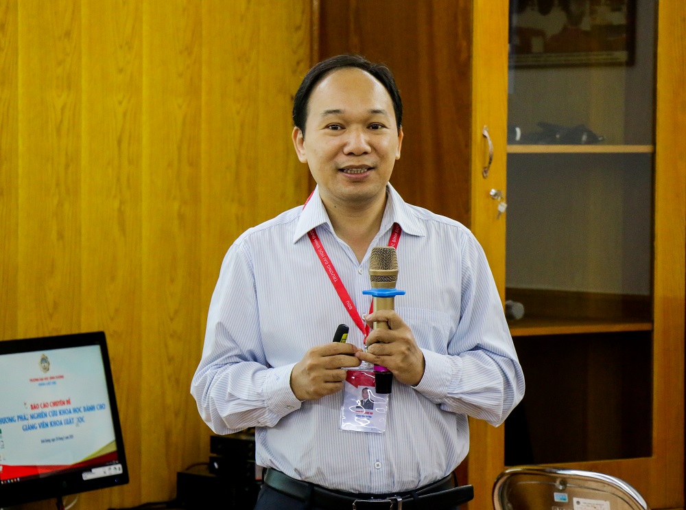 Tại chương trình, TS. LS Nguyễn Bình An – Giảng viên Khoa Luật học, Báo cáo viên chính trong Hội nghị đã chia sẻ đến quý thầy cô trong Khoa về các nội dung liên quan đến hoạt động nghiên cứu khoa học, bao gồm: Tính trung thực trong nghiên cứu khoa học; Phương pháp lựa chọn đề tài; Cách xây dựng đề cương; Tìm hiểu, thu nhập dữ liệu và viết tổng quan; Các phương pháp nghiên cứu khoa học; Tiêu chuẩn trích dẫn và lập danh mục tài liệu tham khảo…