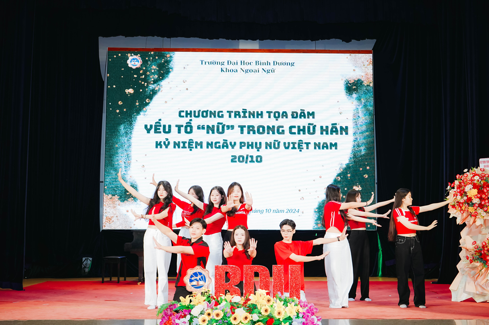 Nhân kỷ niệm 94 năm Ngày Phụ nữ Việt Nam 20/10, sáng ngày 19/10, Khoa Ngoại Ngữ - Trường Đại học Bình Dương tổ chức chương trình tọa đàm học thuật với chủ đề "Yếu tố “Nữ” trong chữ Hán." Chương trình nhằm tạo diễn đàn trao đổi học thuật, kết nối các giảng viên, nhà nghiên cứu, sinh viên và những người quan tâm đến lĩnh vực ngoại ngữ, đồng thời tôn vinh vai trò của phụ nữ trong văn hóa và giáo dục.