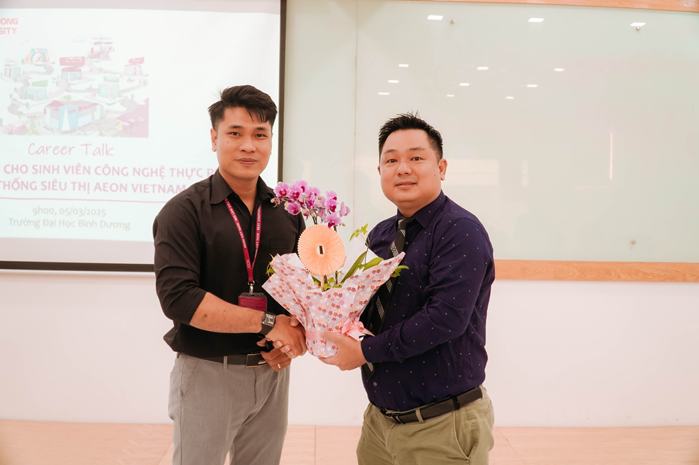 Tại chương trình, ông Nguyễn Thanh Ngọc Huy đã chia sẻ về mô hình hoạt động của hệ thống siêu thị AEON, cũng như các vị trí tuyển dụng phù hợp với sinh viên ngành Công nghệ Thực phẩm. Đồng thời cho biết: “AEON luôn tìm kiếm những ứng viên trẻ, năng động và có kiến thức chuyên môn về thực phẩm để đảm bảo chất lượng sản phẩm đến tay người tiêu dùng.”