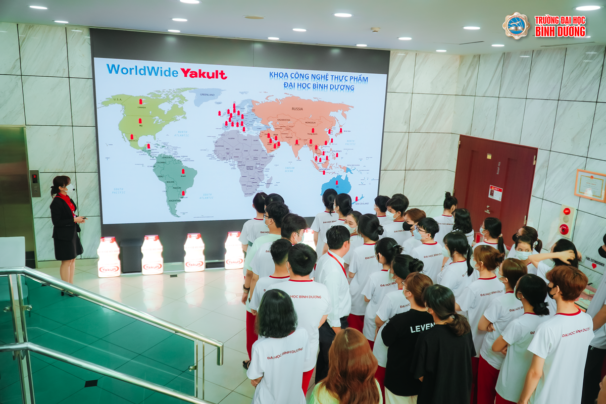 Tham quan doanh nghiệp là một trong những nội dung nằm trong chương trình học của sinh viên BDU. Dưới sự dẫn dắt của chị Như Ngọc – Phòng Phát triển sản phẩm, Nhà máy Yakult Việt Nam, các bạn sinh viên BDU đã được cung cấp nhiều thông tin về lịch sử hình thành, giá trị dinh dưỡng của sản phẩm sữa Yakult.