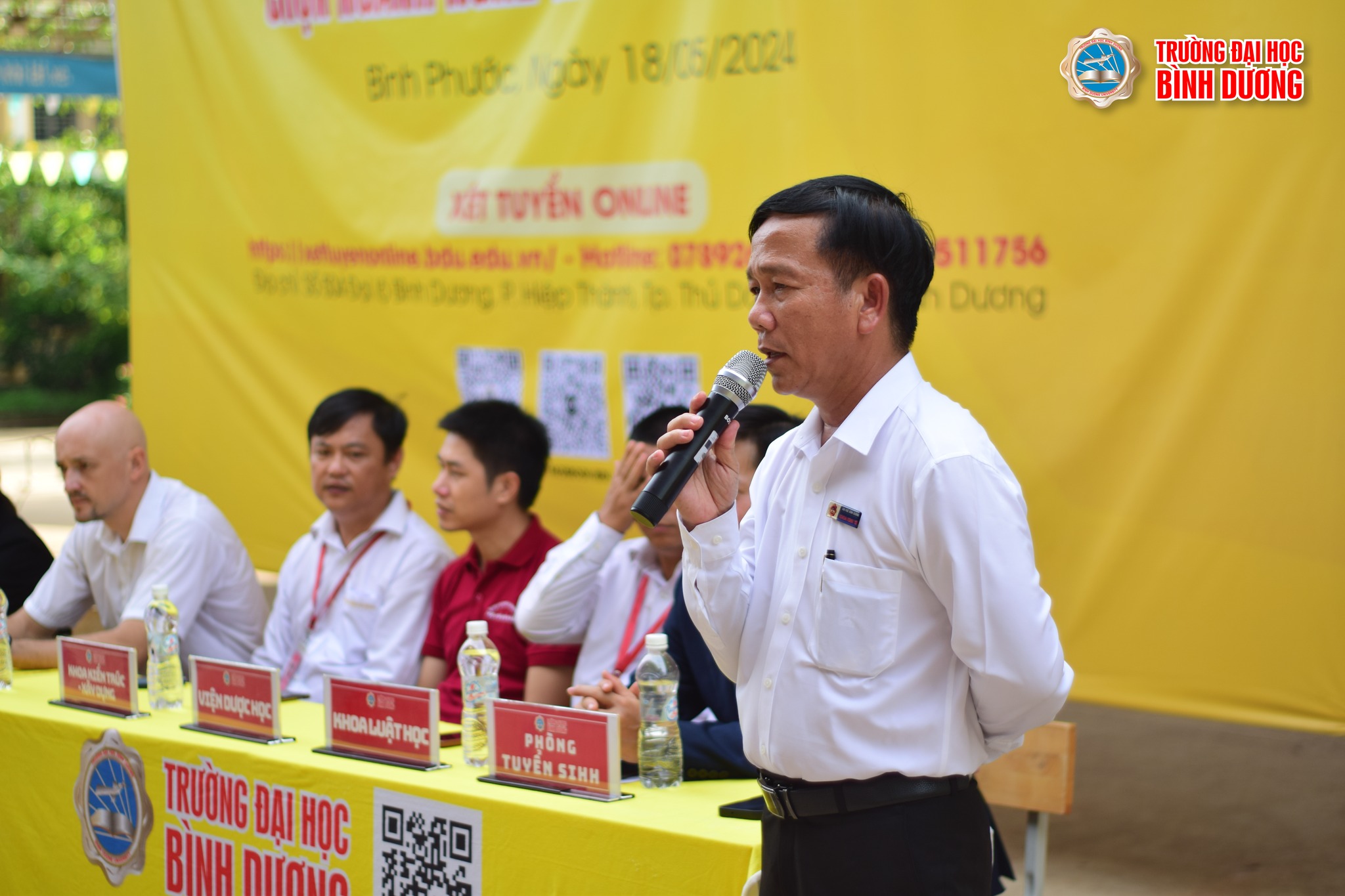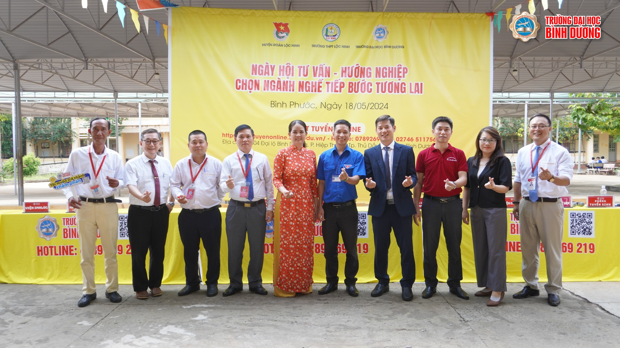 Sáng 18/5/2024, Trường Đại học Bình Dương (BDU) phối hợp cùng Huyện đoàn Lộc Ninh (Bình Phước) tổ chức ngày hội tư vấn tuyển sinh tại Trường THPT Lộc Ninh thu hút hơn 500 em học sinh khối 12 của Nhà trường tham dự. Ngày hội là dịp để các bạn học sinh được các thầy/cô tư vấn tuyển sinh, định hướng nghề nghiệp; được tìm hiểu về thị trường lao động qua việc lắng nghe, tiếp xúc và tìm hiểu sâu hơn những yêu cầu, cơ hội việc làm các ngành nghề, từ đó định hướng cho mình con đường nghề nghiệp trong tương lai.