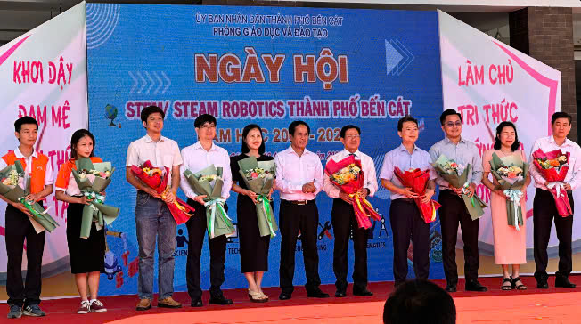 Giáo viên và học sinh tham gia các hoạt động STEM cùng Trường Đại học Bình Dương.