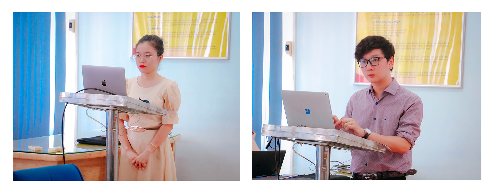Hai NCS lần lượt trình bày nội dung thực hiện trước Hội đồng.