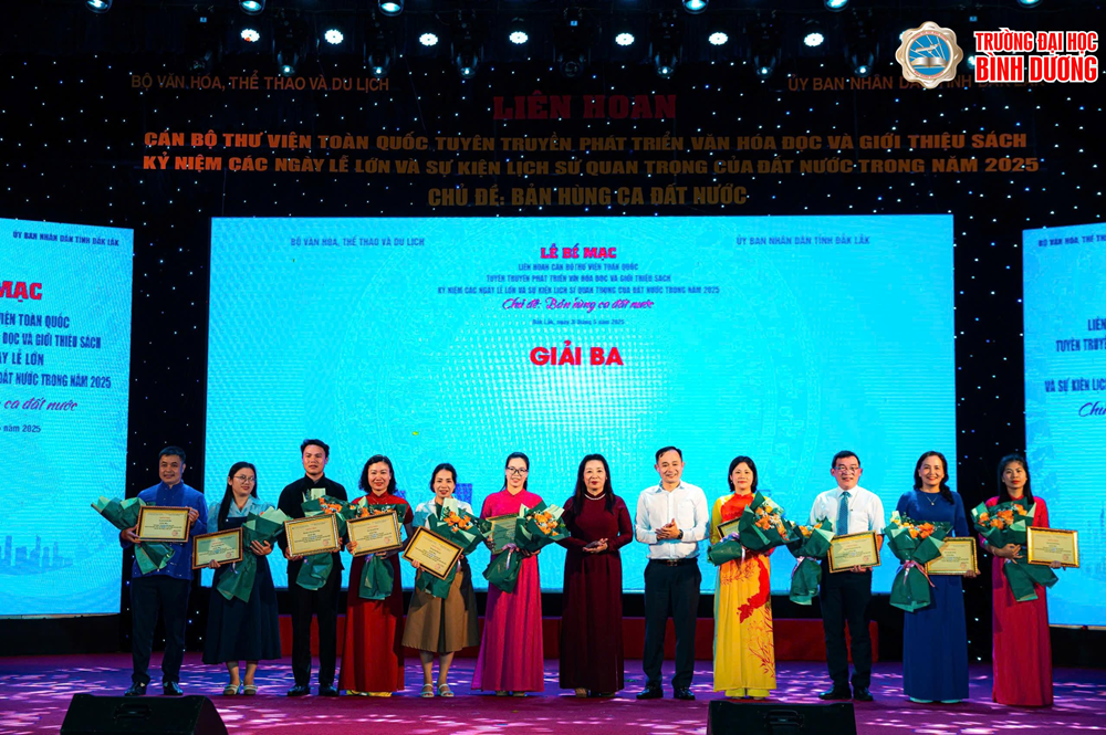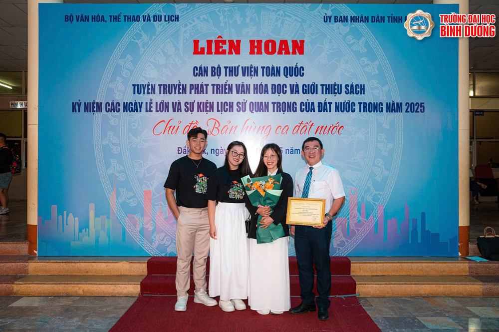 Từ ngày 26 đến 30/5/2025, tại tỉnh Đắk Lắk, Bộ Văn hóa, Thể thao và Du lịch tổ chức Liên hoan Cán bộ Thư viện toàn quốc tuyên truyền phát triển văn hóa đọc và giới thiệu sách, kỷ niệm các ngày lễ lớn, sự kiện lịch sử quan trọng trong năm 2025 với chủ đề “Bản hùng ca đất nước”. Trường Đại học Bình Dương đã góp mặt với nhiều tiết mục nghệ thuật và hoạt động ý nghĩa, ghi dấu ấn mạnh mẽ tại sự kiện.