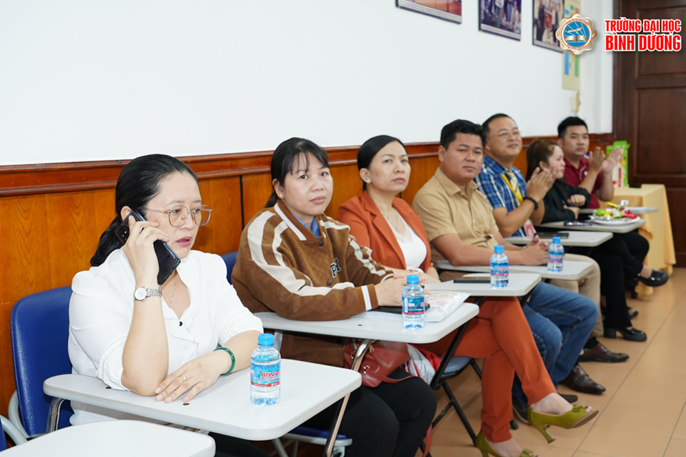 Tham dự buổi Lễ có TS. Đỗ Đoan Trang – Phó Hiệu trưởng Trường trực Nhà trường, Kiêm Trưởng Khoa Kinh tế; TS. Trịnh Huỳnh An - Phó Hiệu trưởng, Giám đốc Phân hiệu Trường Đại học Bình Dương tại Cà Mau (online); PGS.TS Lê Hoàng Anh - Giảng viên thỉnh giảng Khoa Kinh tế; TS. Bùi Thị Kim Loan – Trưởng Khoa Ngoại ngữ; ThS. Nguyễn Trung Tín - Phó Trưởng Khoa Thường trực Khoa Kinh tế; ThS. Đoàn Minh Thảo – Trưởng Phòng Tổng hợp; ThS. Nguyễn Thị Kim Anh – Phó Trưởng Phòng Tổng hợp; ThS. Lê Ngọc Nữ – Trưởng Ban Quản lý Đào tạo - Công tác sinh viên (online); ThS Thái Thanh Hùng – Phó Trưởng Phòng Quản lý & Công tác sinh viên cùng đại diện các đơn vị đối tác của Nhà trường.